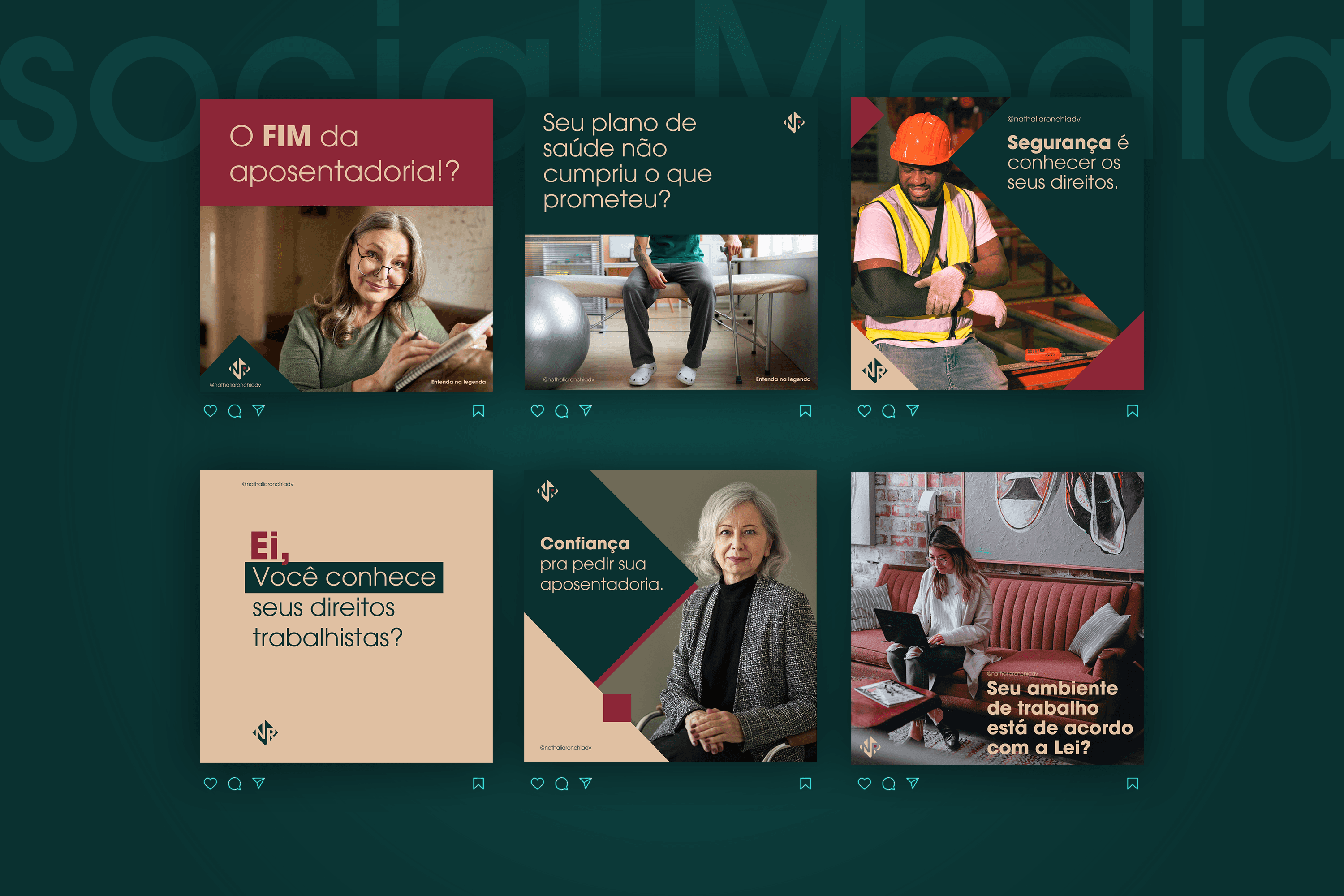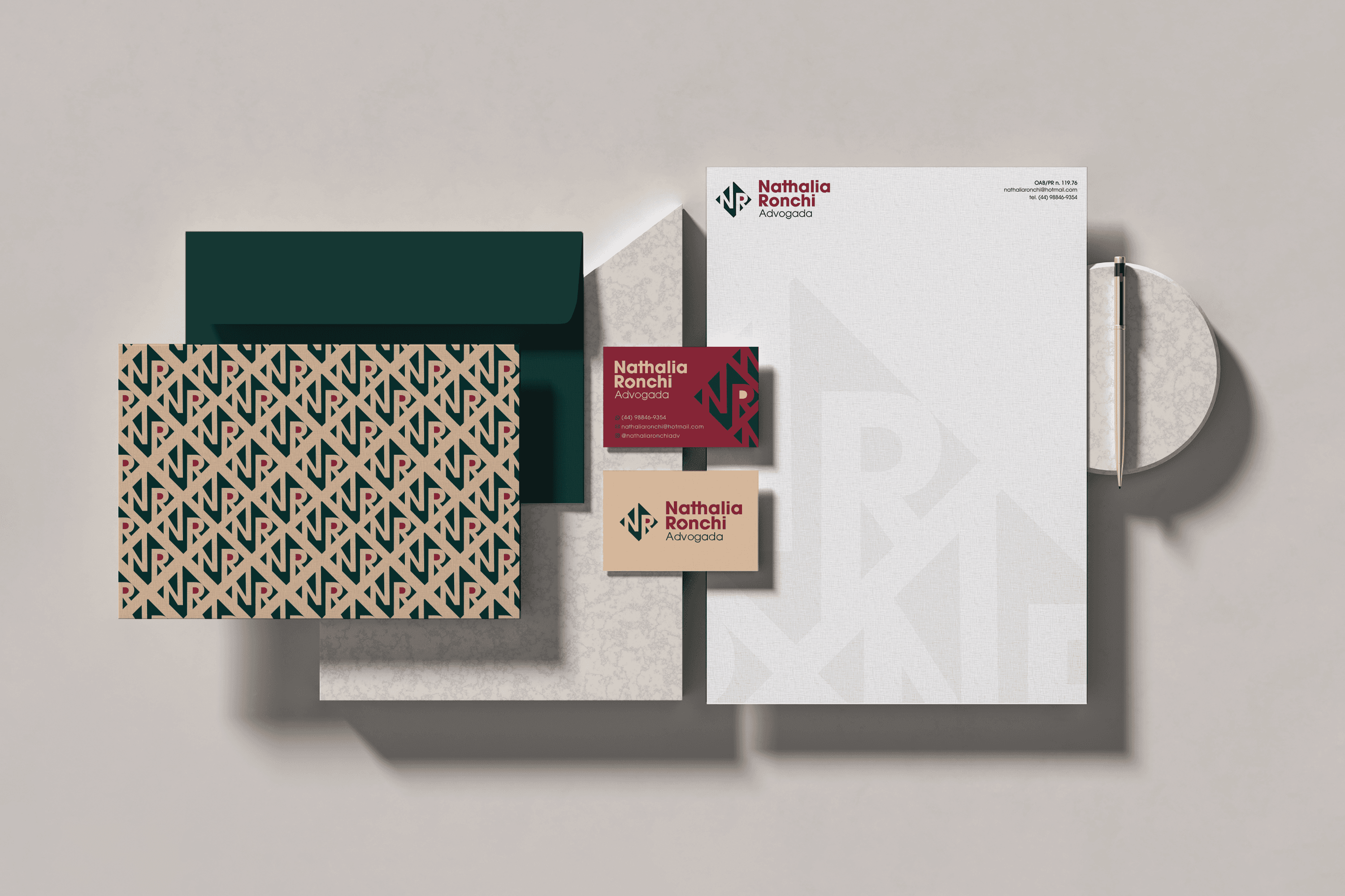Identidade visual desenvolvida para a Advogada Nathalia Ronchi, especializada em direito previdenciário, trabalhista e médico.