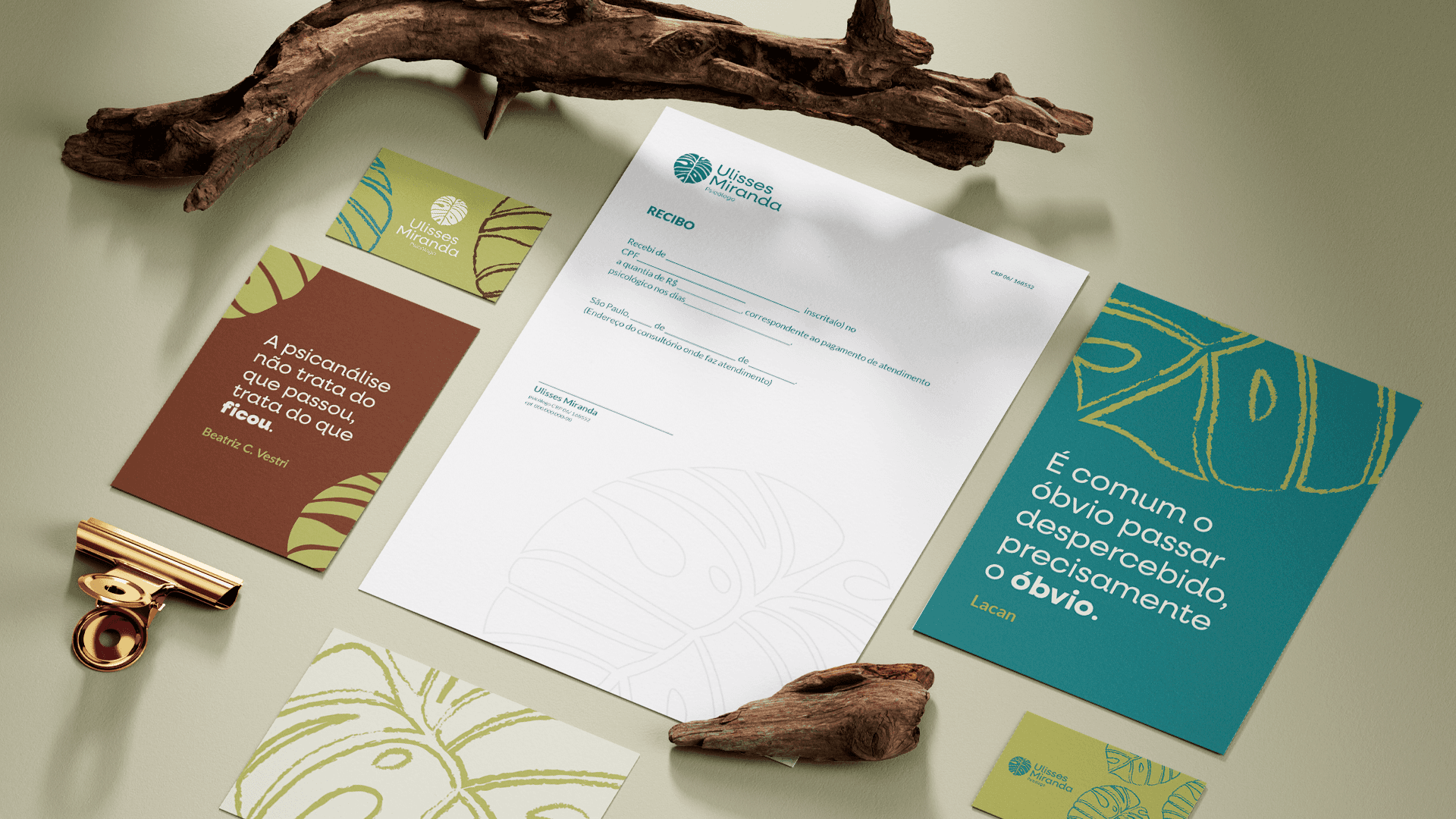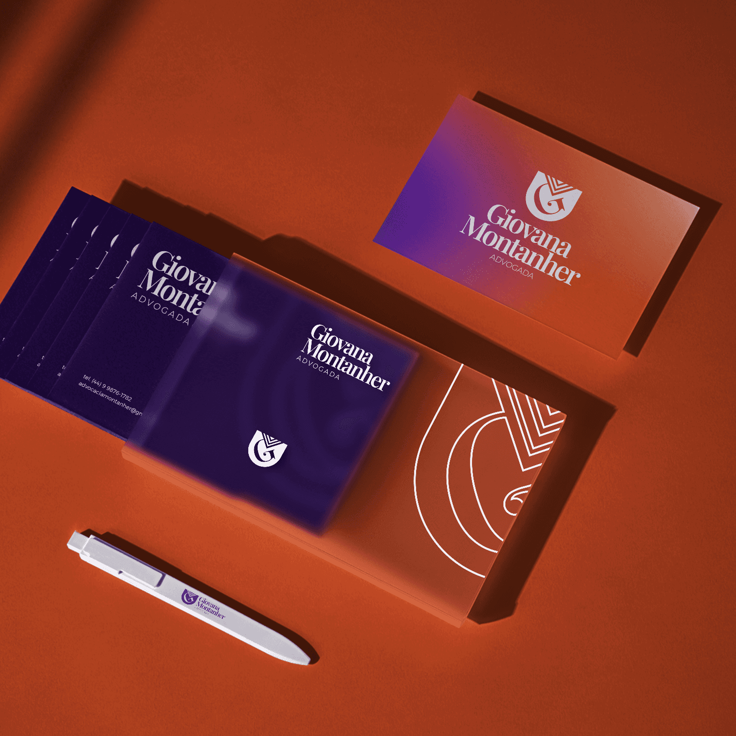 Sua logo foi elaborada utilizando um monograma com as iniciais do nome e sobrenome respectivamente, como uma forma de reforçar a identificação por meio da simplificação e redução do nome completo como forma de ícone. O uso de formas duras e retangulares busca trazer força e solidez a marca que se complementa pelo uso de fontes sem serifa levemente arredondadas dando um aspecto de modernidade. A paleta de cores foi definida em um processo conjunto que respeitou e levou em conta os desejos e necessidades da cliente que já havia definido uma paleta de cores com valor emocional e concordamos em mantê-la em todos os materiais produzidos.